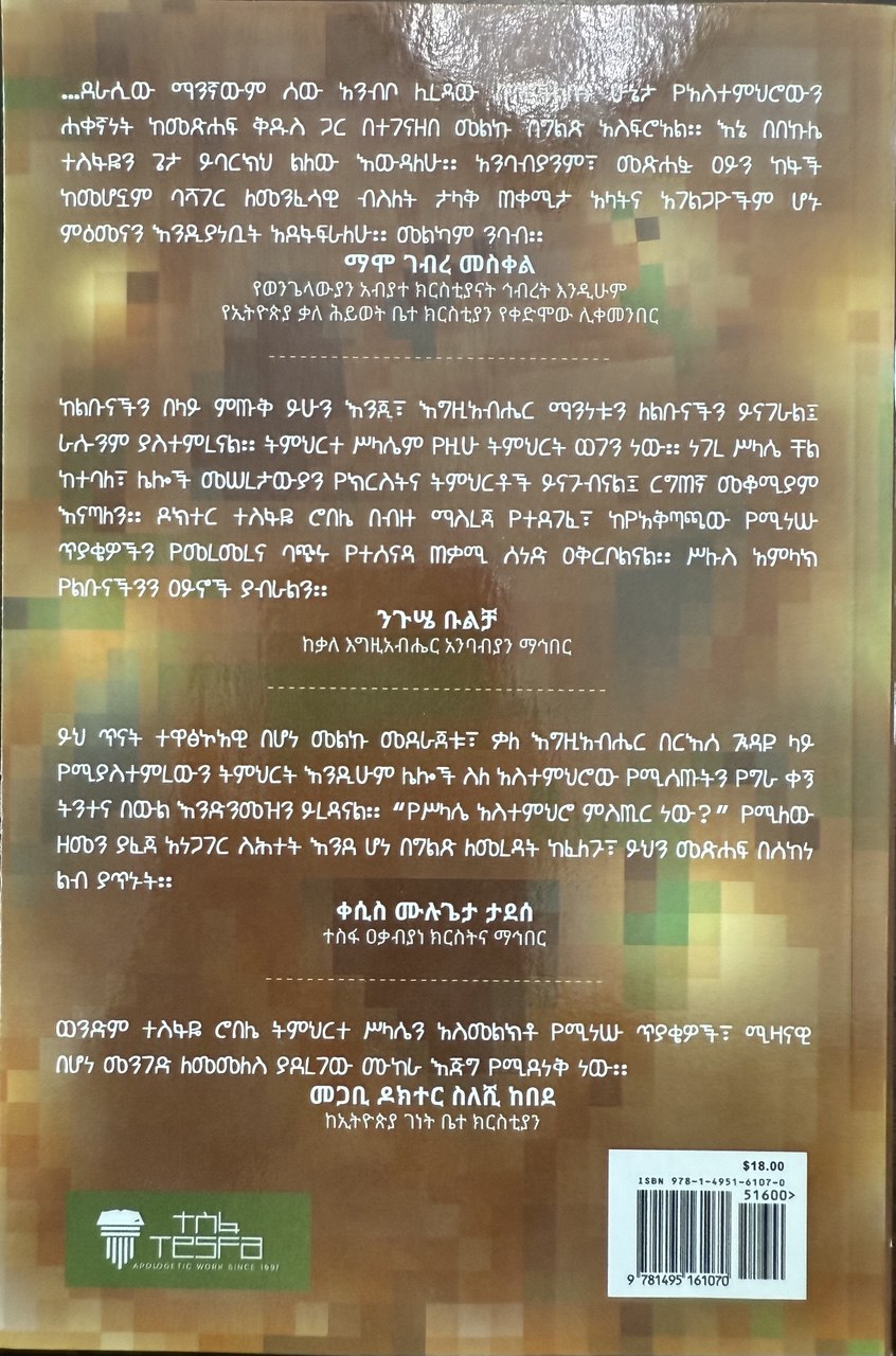Be the first to review “የትምህርተ ሥላሴ መሰረታዊያን መፅሃፍ ቅዱሳዊ ፤ ታሪካዊና ምክንዮታዊ ትንታኔ”